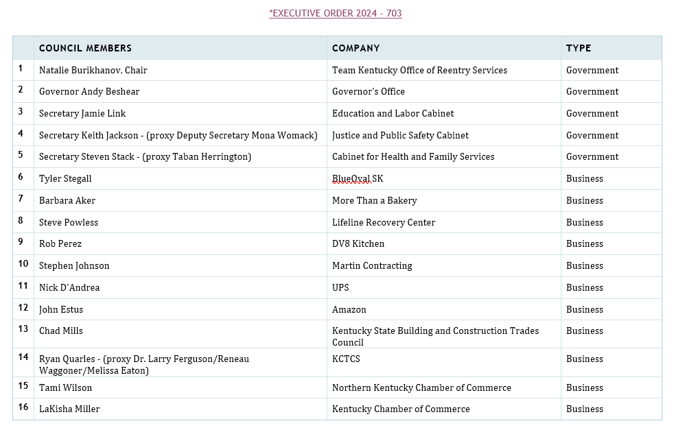 executive order to establish the Governor’s Council of Second Chance Employers. This council aims to promote second-chance hiring practices, improve reentry outcomes for individuals released from incarceration, and reduce recidivism rates in the state. The council will meet quarterly and provide annual reports to the Governor.