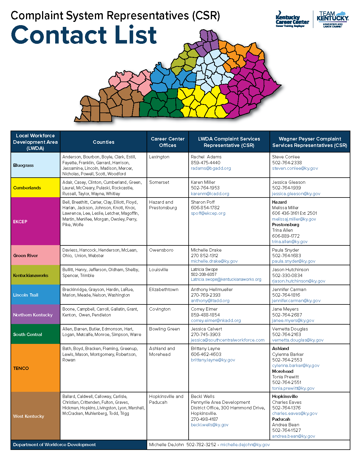 If you have a concern about services you received please reach out to a representative in your area as listed below: